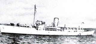 debajo una corbeta del tipo Flower, el mismo que los dos barcos de